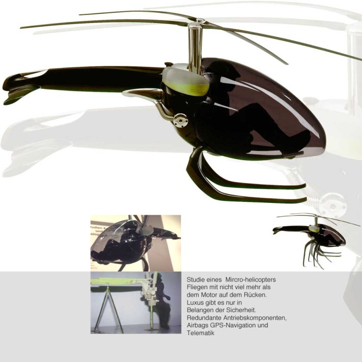 Fliegen mit nicht mehr als dem Motor und dem Rotor auf dem Rücken.